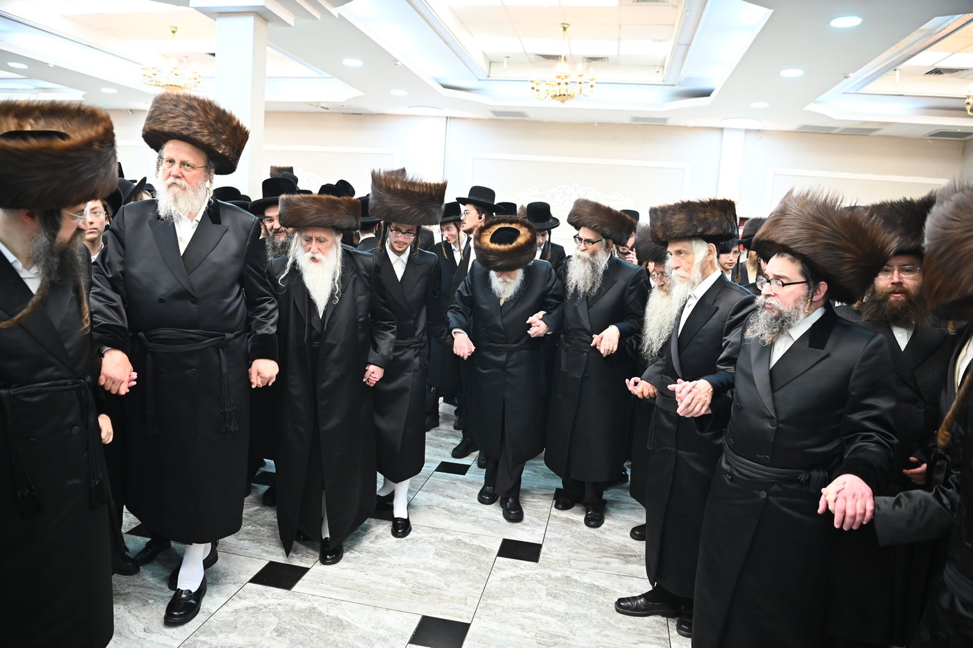קהל רב נטל חלק בשמחת בית צדיקים שמחת נישואי נכדתם של האדמו"ר מביאלה ישרי לב והגה"צ רבי דב שטרן אב"ד סקולען ב"ב, עב"ג החתן נין הנגיד רבי אליש אנגלנדר מלונדון, ונין האדמו"ר מאלכסנדר זצ"ל | השמחה התקיימה באולמי 'היכלי הפאר' בבני ברק בראשות רבני ואדמו"רי המשפחה והעיר, ורבים מהחסידים מחצרות הקודש (חסידים)