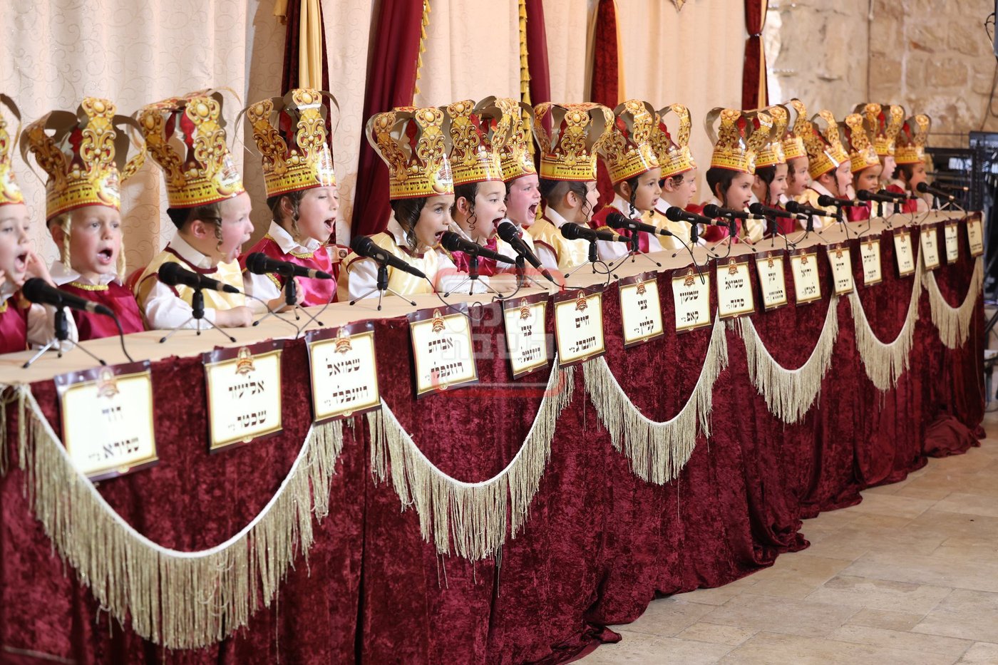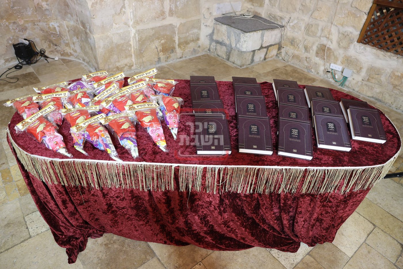 ילדי תלמוד תורה 'משנת שמעון' בצפת, חגגו מסיבת חומש בבית הכנסת בעיר העתיקה | ההורים והסבים הנרגשים הסבו סביב שולחנות ערוכים כל טוב והאזינו בהנאה במתיקות הבל פיהם של תינוקות של בית רבן שאמרו פסוקי התורה בהתמדה טהורה (חרדים)