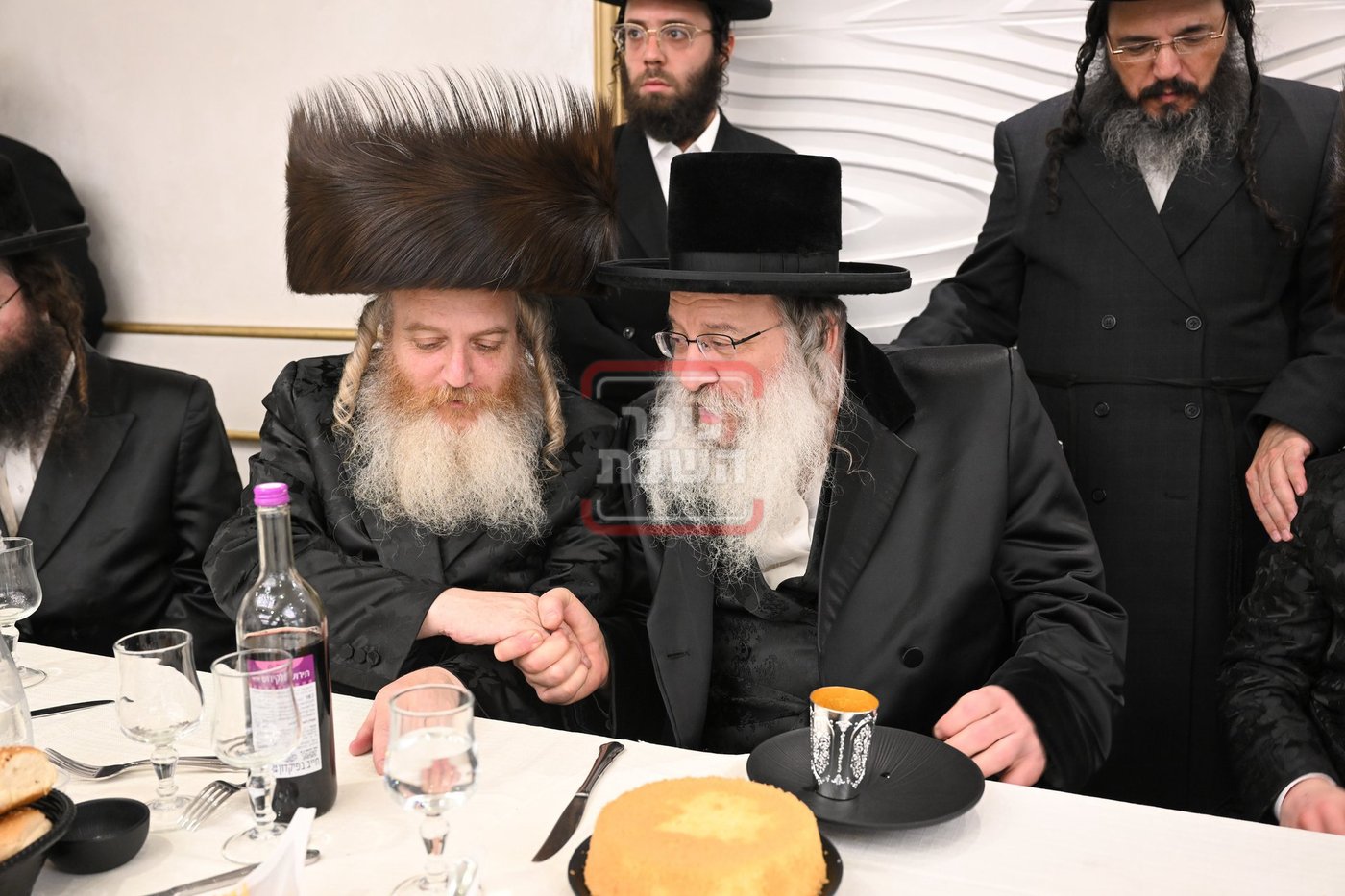 האדמו"ר מצאנז ערך במיוחד מסיבת שבע ברכות באולם שבמעון קודשו בנתניה לכבוד איש אמונו, ובסיום קם לריקוד נלהב עם החתן והמחותן הרם והנעלה.