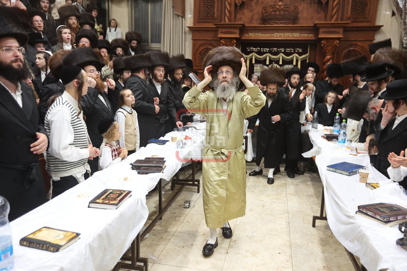 בהיכל ביהמ"ד תולדות אברהם יצחק בשכונת סלונים בבית שמש, ערך המשפיע הגה"צ רבי אלימלך בידרמן התוועדות מרעים במוצאי שבת 'נחמו', כהכנה לקראת חג חמשה עשר באב | המשפיע רומם את הקהל טפח טפחיים מאדמת החולין, ובמיוחד בעת הריקודין כפי שתחזינה עיניכם מישרים כאן בגלריה המרהיבה (חסידים)