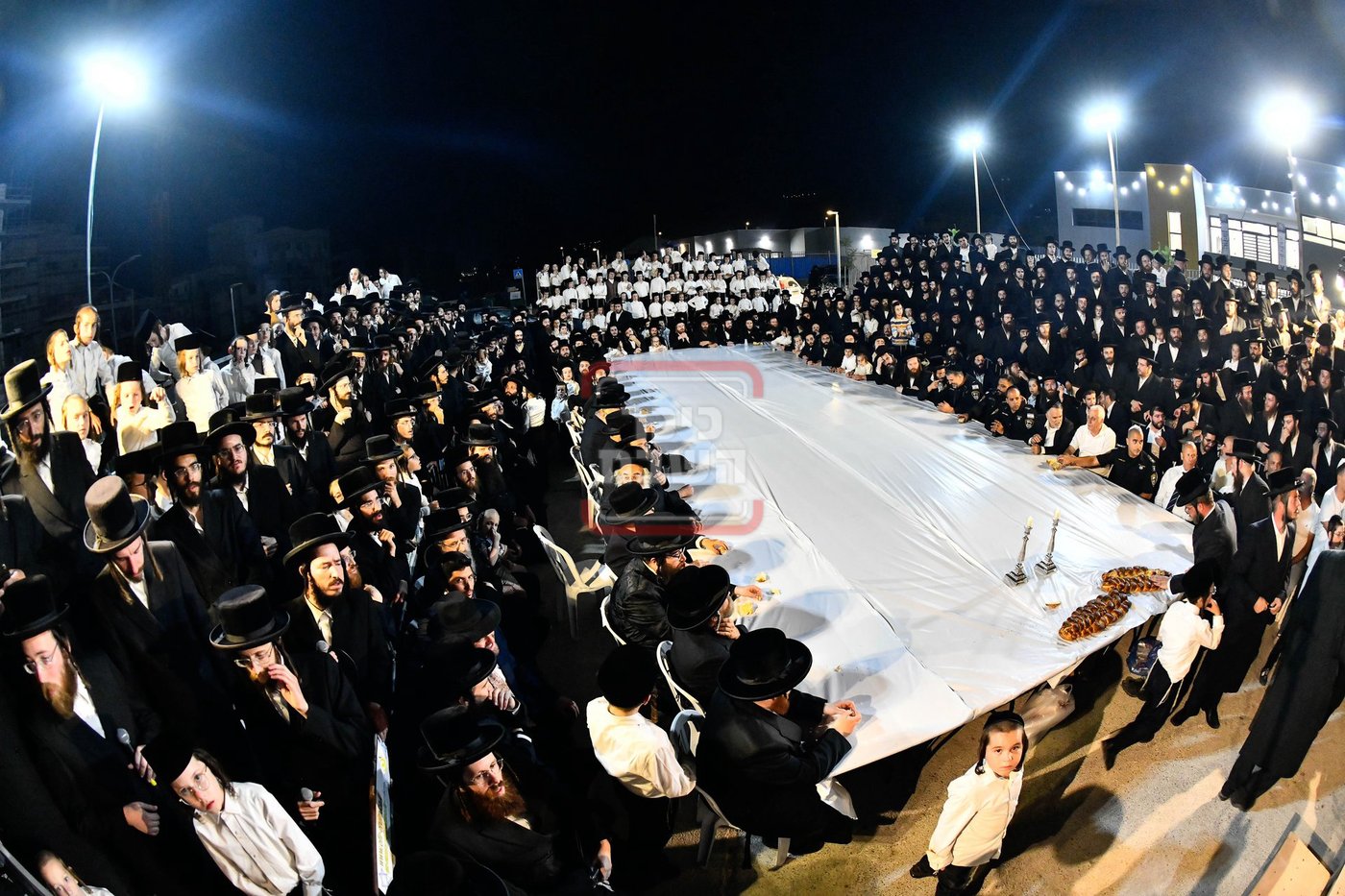 האדמו"ר מויז'ניץ בריקוד בסעודת ראש חודש בקהילתו בעפולה עילית (צילום: שוקי לרר)
