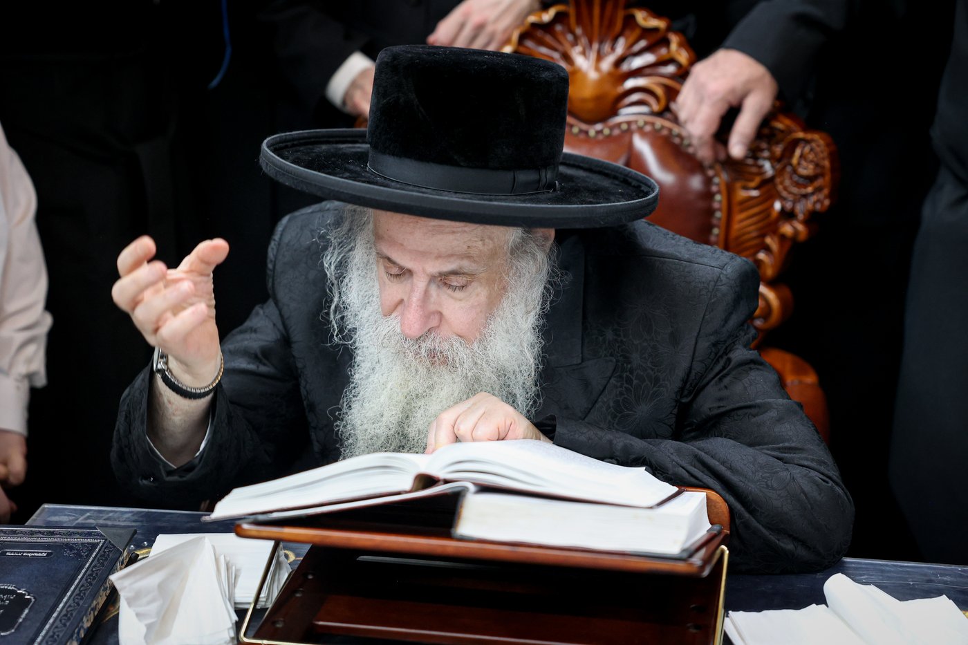 מאות חסידי מודז'יץ השתתפו אמש במעמד ההדלקה שערך האדמו"ר בהיכל בית מדרשו הגדול והחדש בבני ברק | בסיום המעמד נערך טיש לחיים לרגל שמחת בר המצווה לנכדו של האדמו"ר, בן לבנו הרה"ג ר' שמואל אליהו טאוב, חתן הרה"ג ר' אליהו שטרן, אב"ד מושב מירון ברחובות | לאחר מכן עברו הקהל לקבלת מטבעות קודש לברכה (חסידים)