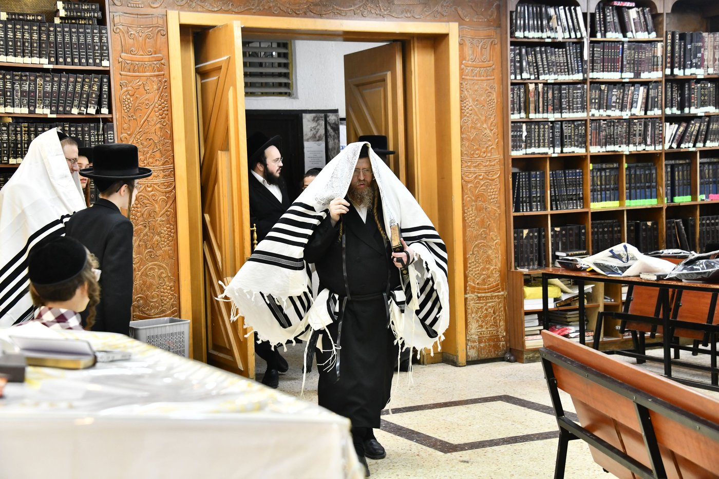 אחר תפילת שחרית בהיכל בית מדרשו בבני ברק, נכנס האדמו"ר משומרי אמונים שוב אל בית המדרש לעריכת 'התרת נדרים' מול מנין חסידים שהתירו את נדרי האדמו"ר (חסידים)