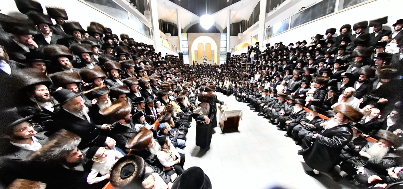 רבבות חסידי בעלזא זוכים מדי ערב להתבשם לאורו של האדמו"ר במעמדי אורה בעת הדלקת נרות החנוכה, בהיכל הגדול במרכז העולמי של החסידות בירושלים | כפי שהנהיג הרה"צ מבעלזא בשנים האחרונות, מקומות העמידה על הפארנצ'עס מיועדים לאלפי בחורי הישיבות | אמש, השתתף במעמד האדמו"ר מויז'ניץ ירושלים | צפו בתיעוד ענק מהימים הראשונים בצל הקודש (חסידים)