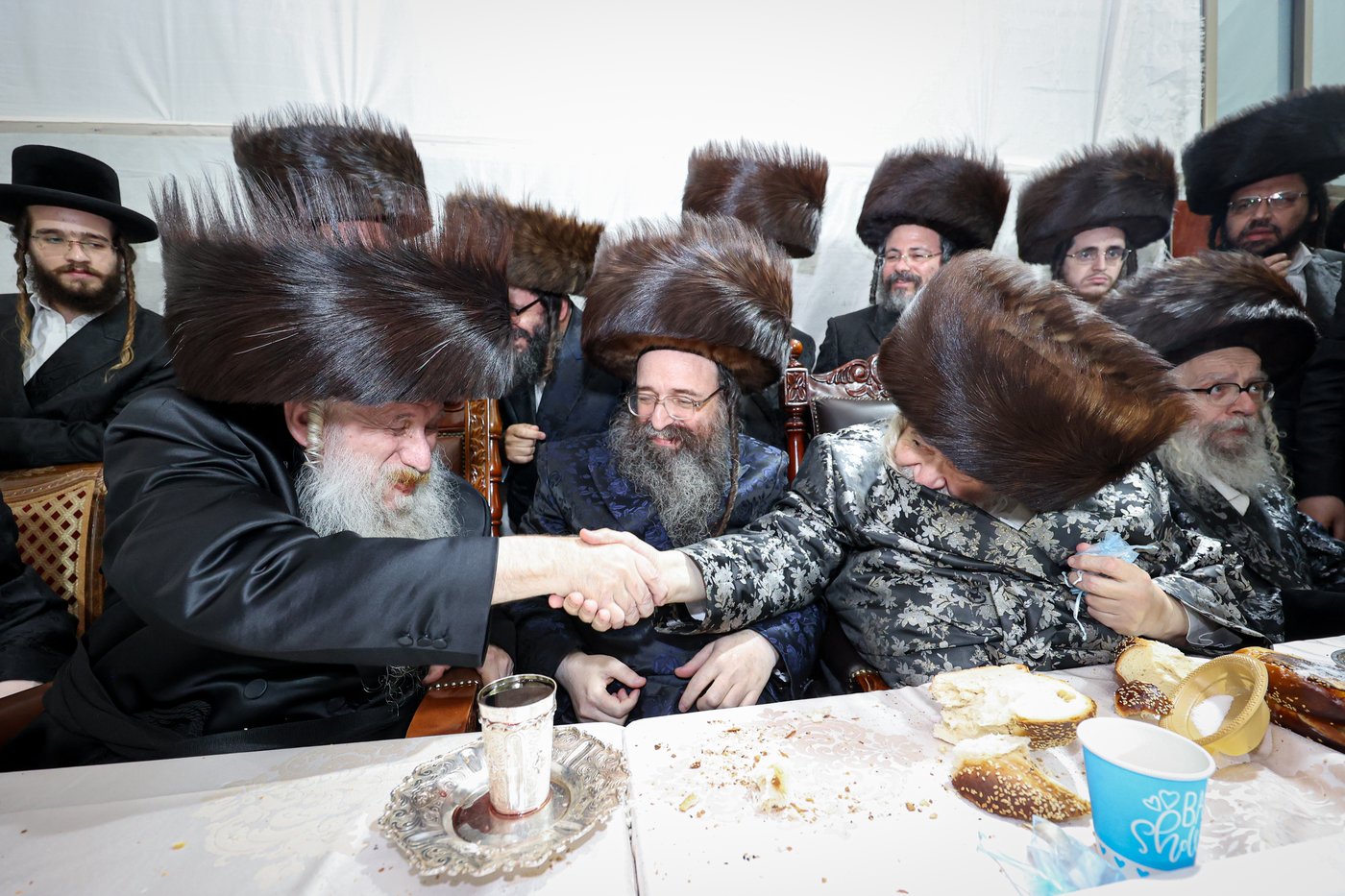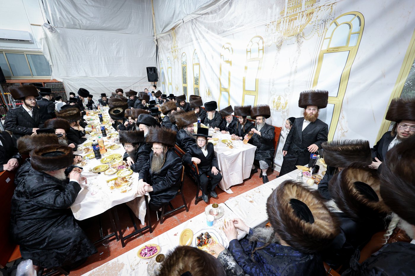 בחול המועד סוכות האחרון התקיימה שמחת פדיון הבן לנין אדמורי"ם מטמשוואר וטשערנוביל | השמחה התקיימה בסוכת האדמו"ר משומרי אמונים בבני ברק, בהשתתפות חסידים ואנשי מעשה (חסידים)