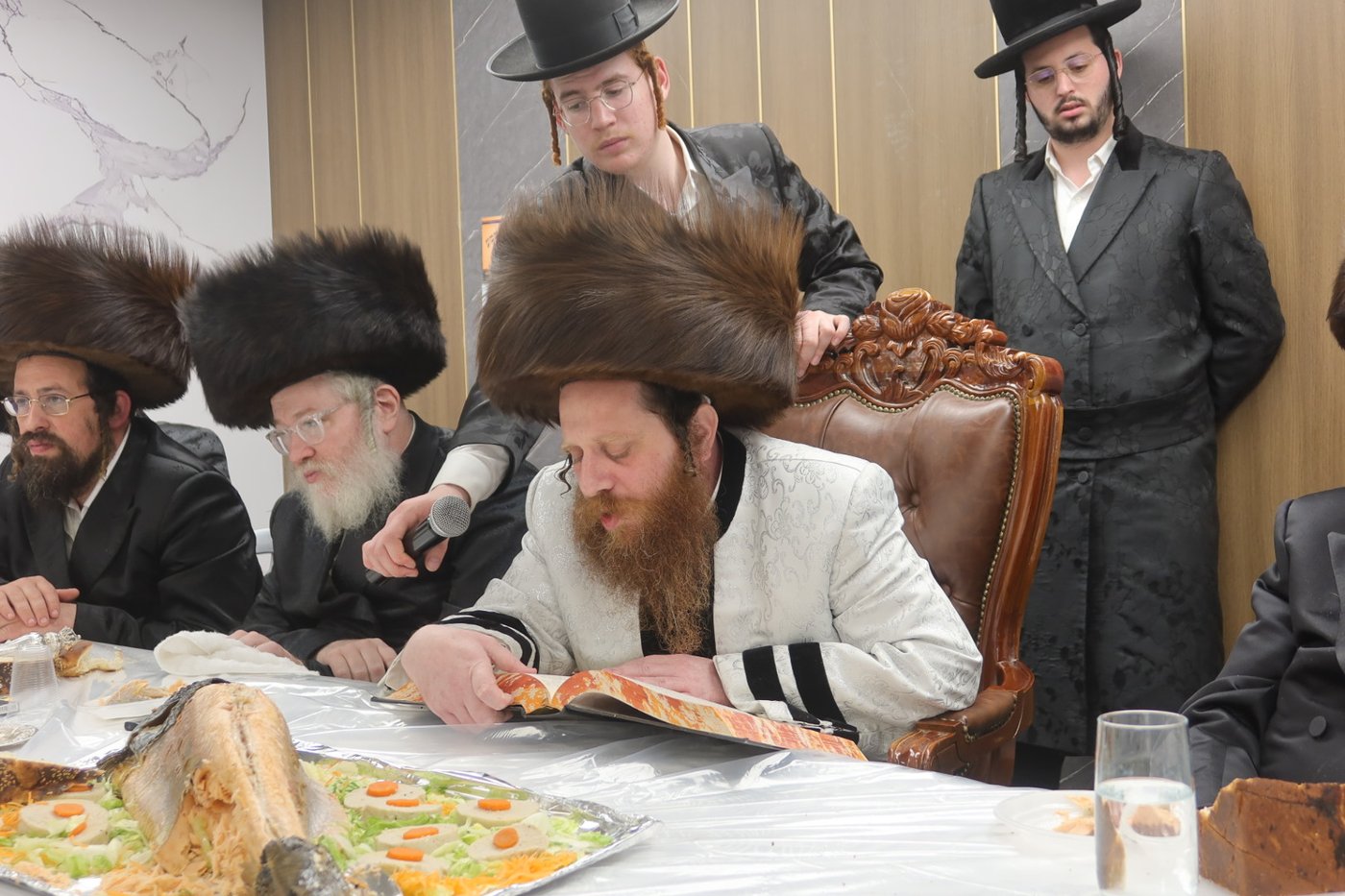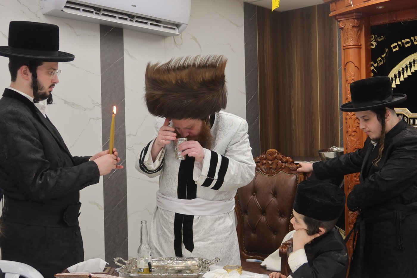 בבגדי לבן ובהשתתפות רבני השכונה | טיש הילולא במיאלען