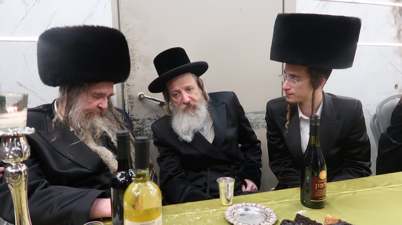 תיעוד משמחות השבע ברכות לכבוד נישואי נכד הגה"צ גאב"ד מאקאווא, בן לחתנו הרה"ג אהרן מנדלסון בנו של גאב"ד קוממיות זצ"ל | בשמחות השתתפו רבנים ואדמורי"ם ידידי בני המשפחה שבאו לאחל מזל טוב לגאב"ד בעת שמחתו (חסידים)