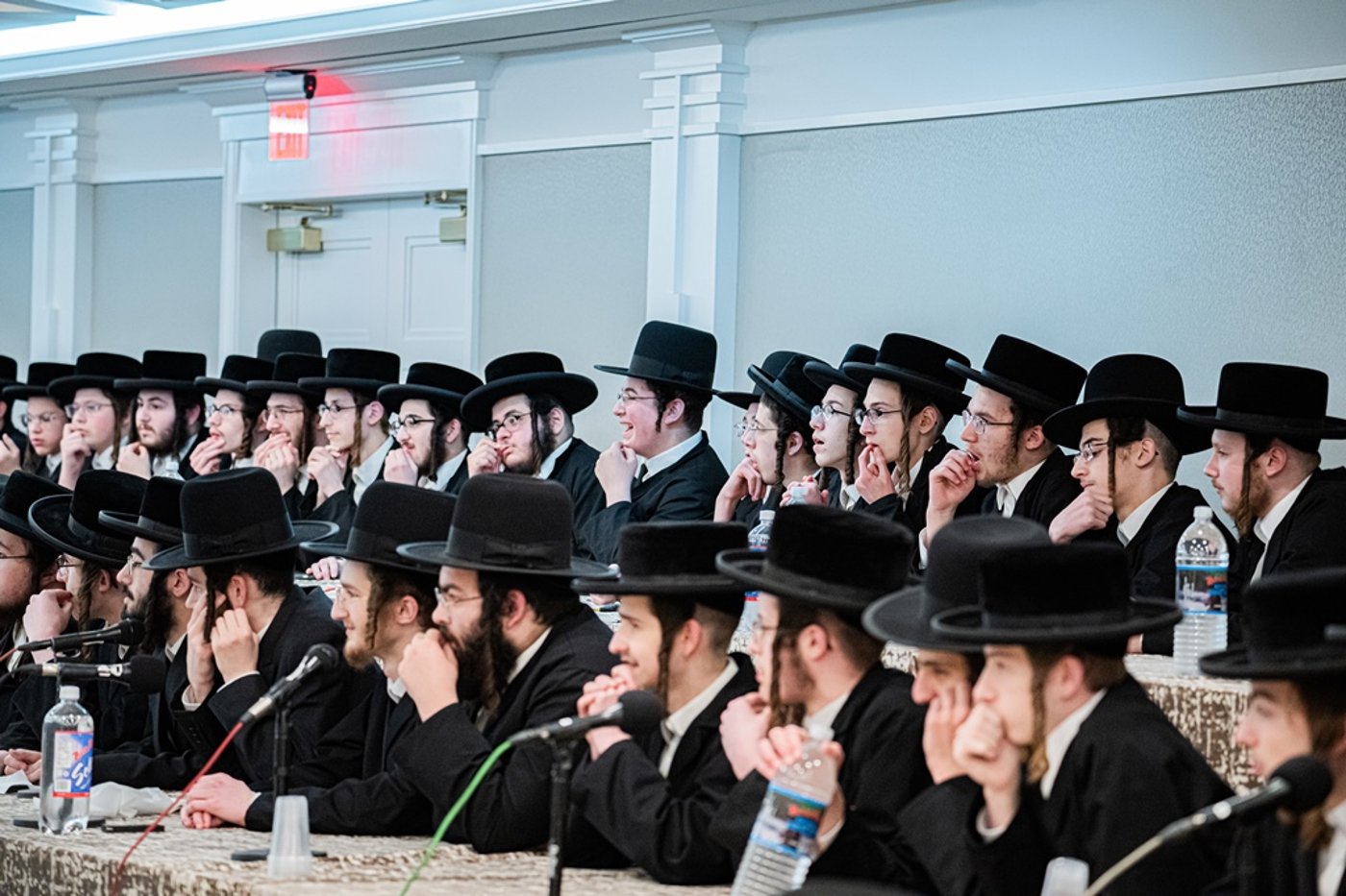 עשרות הבחורים נבחנו על הש"ס באולם שבמעון האדמו"ר