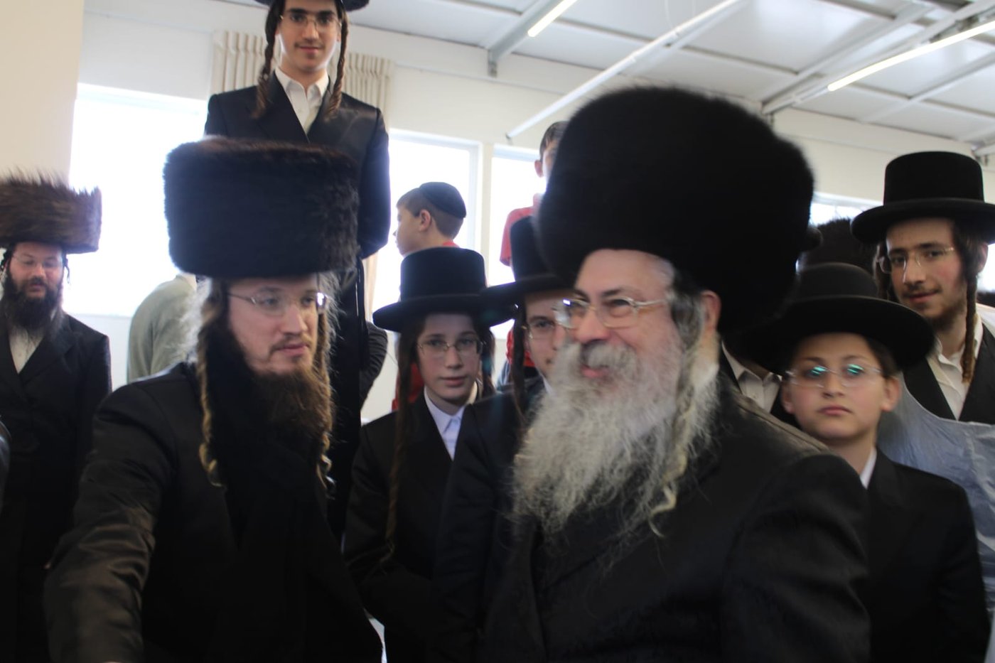 בהיכל ישיבתו הרמה במרכז בני ברק, העלה האדמו"ר מאלכסנדר את שלהבת האש בנר ראשון של חנוכה | במעמד השתתפו המוני חסידים, ובראשם חתנו, האדמו"ר מאונגוואר ארה"ב השוהה בארה"ק בימים אלו | המעמד התקיים בהיכל הישיבה עקב בניית בית המדרש (חסידים)