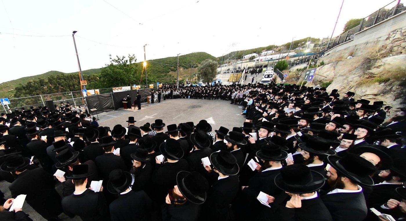 עוד ועוד גדולי ומנהיגי עדות וחצרות קודש, מעדיפים לפקוד את ציון התנא האלוקי רשב"י יחד עם קהל החסידים ימים אחדים אחרי יום ל"ג בעומר | השבוע נצפה האדמו"ר מסערט ויז'ניץ, בתפילה נרגשת עם קהל חסידיו בסמוך לציון הקדוש, כשהחסידים בחרו לא לעמוד על פארנצ'עס אלא במעגל אחד ענק (חסידים)