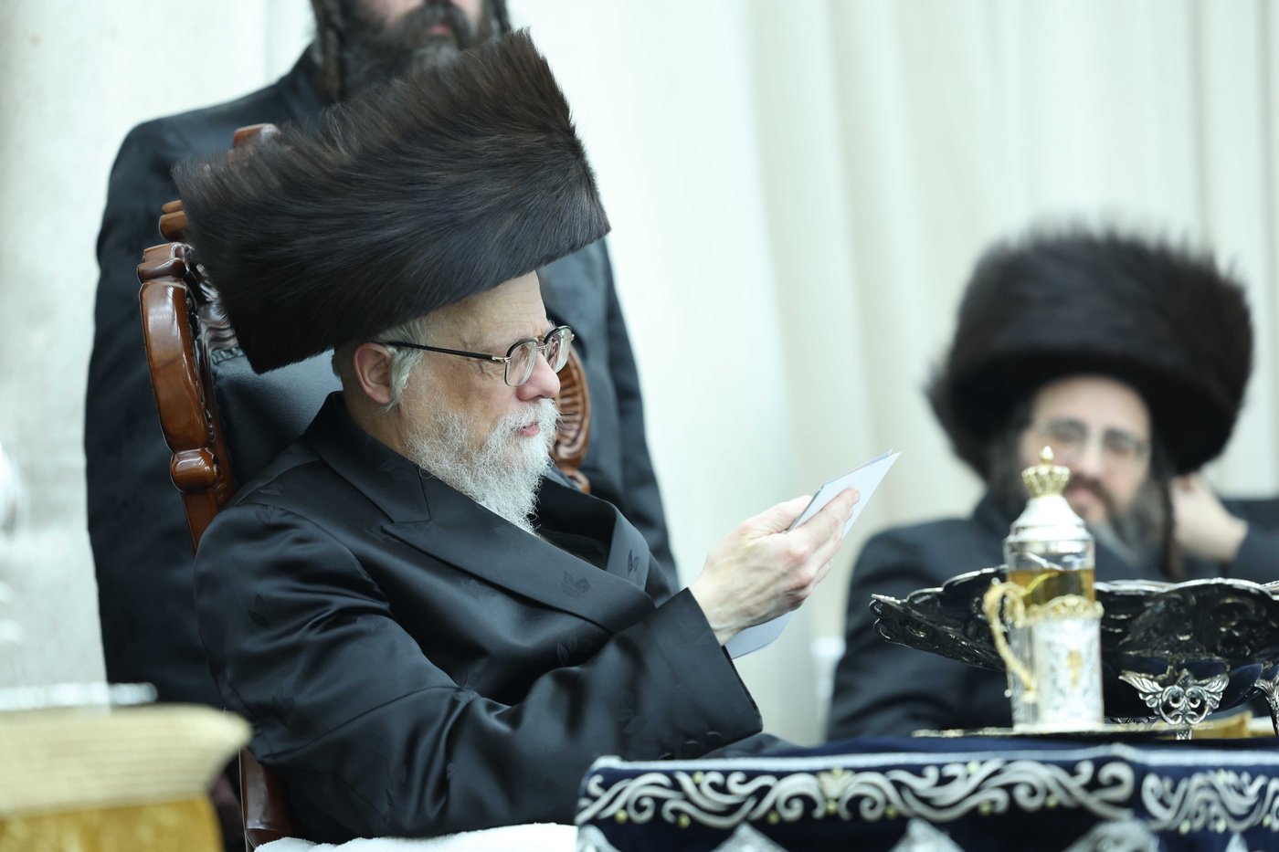 מאות חסידי מודז'יץ השתתפו אמש במעמד ההדלקה שערך האדמו"ר בהיכל בית מדרשו הגדול והחדש בבני ברק | בסיום המעמד נערך טיש לחיים לרגל שמחת בר המצווה לנכדו של האדמו"ר, בן לבנו הרה"ג ר' שמואל אליהו טאוב, חתן הרה"ג ר' אליהו שטרן, אב"ד מושב מירון ברחובות | לאחר מכן עברו הקהל לקבלת מטבעות קודש לברכה (חסידים)