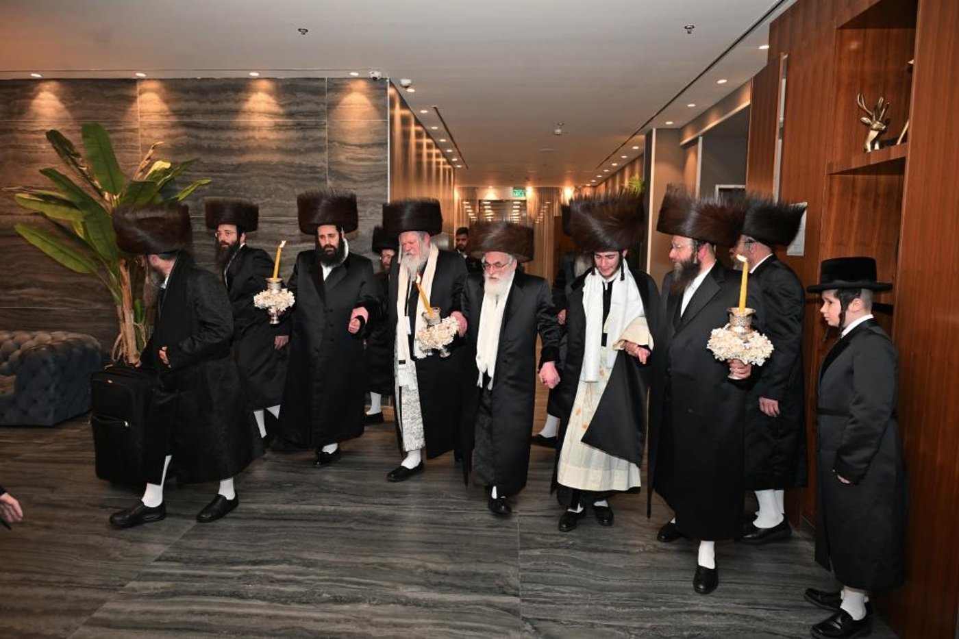 השמחה החלה במעמד ה'קבלת פנים', כשחבר המשוררים של חצרות ויז'ניץ ופרמישלאן עוררו בניגוני התעוררות וכיבושין כנהוג, בסיום הלבישו האדמו"רים את החתן במלבושי קודש ירושות העתיקות, האדמו"רים והמחותנים ליוו את החתן לחופה.