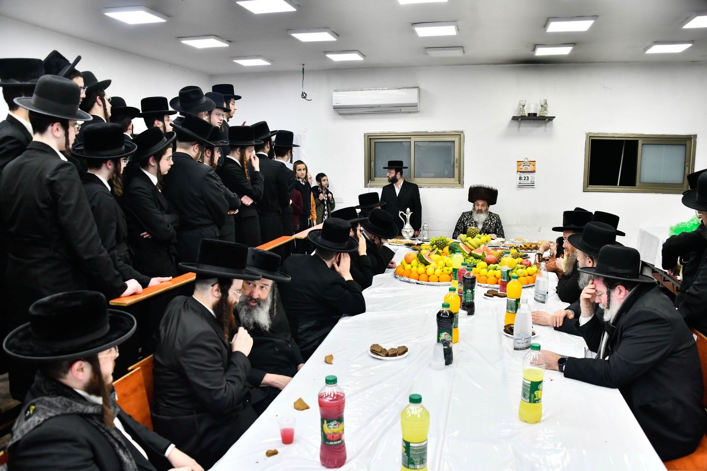 משמשי האדמו"ר מזוטשקא אמסנא לא חסכו במלאכת הקודש, והכינו שולחן הדור לתפארת מטוב פירות ארץ ישראל | האדמו"ר נכנס לעריכת השולחן לבוש בבגדי שבת כמנהג אבותיו הק', ואחר שעה ארוכה של אמירת דברי תורה טעם מהפירות וחילק לקהל החסידים