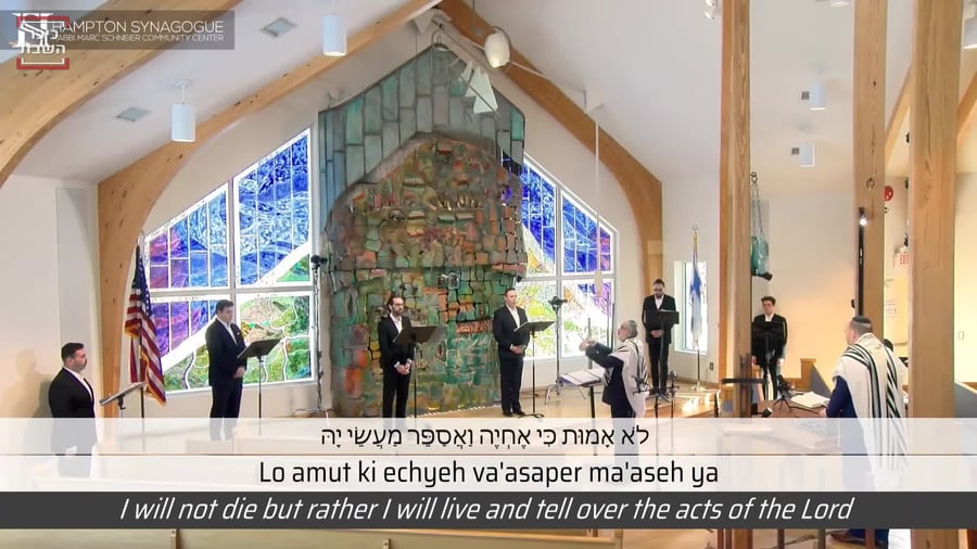 החזן נתנאל הרשטיק ומקהלת בית הכנסת שלו 'המפטון'בניצוחו של יצחק חיימוב מבצעים את "לא אמות" של גוטבייתר. עיבוד: ריימונד גולדשטיין (חזנות)