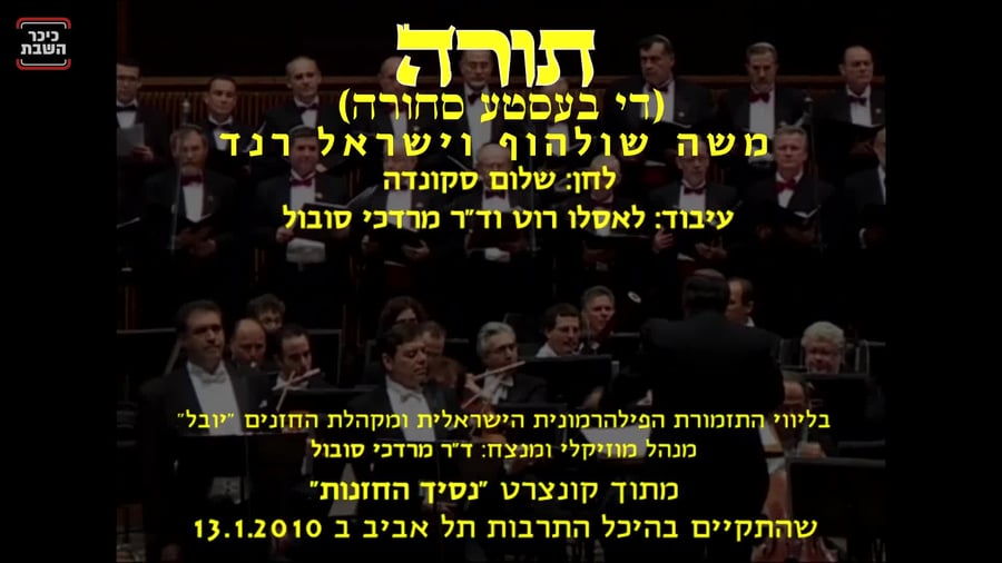 בקונצרט "נסיך החזנות", לזכרו של הרשמן, שקיימנו בהיכל, בשנת 2010, ביצענו מיגוון מיצירותיו, שכלל יצירות חזנות וגם שירים עממיים באידיש, ו "תורה" ביניהם. לראשונה, השיר בוצע כדואט - שני החזנים משה שולהוף וישראל רנד הראו בביצועם ל"תורה" גם דוגמה לאחוות חזנים. חזנים, המציגים בשירתם החיננית ובלב שלם - מהי "הסחורה הטובה ביותר".