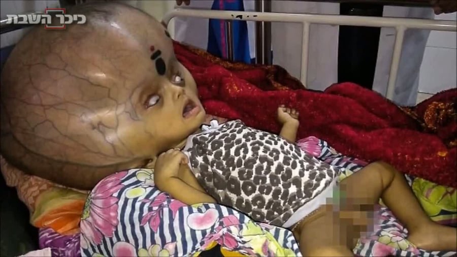 'הידרוצפלוס' היא מחלה המונעת מהגוף לנקז נוזלים עודפים מחוט השדרה ומהמוח. אצל הסובלים ממחלה זו, מצטבר מים בחדרי המוח ויוצר לחץ תוך גולגולתי שגורם גם להגדלת הגולגולת. זהו מצבו של ילד הודי בן 7 חודשים. לאחרונה, בניתוח מורכב, נשאבו 3.7 ליטר נוזלים מראשו, מתוך 5.5 ליטר שישנם בו, וראשו הוקטן מ-96 ס"מ ל-70 (בריאות)