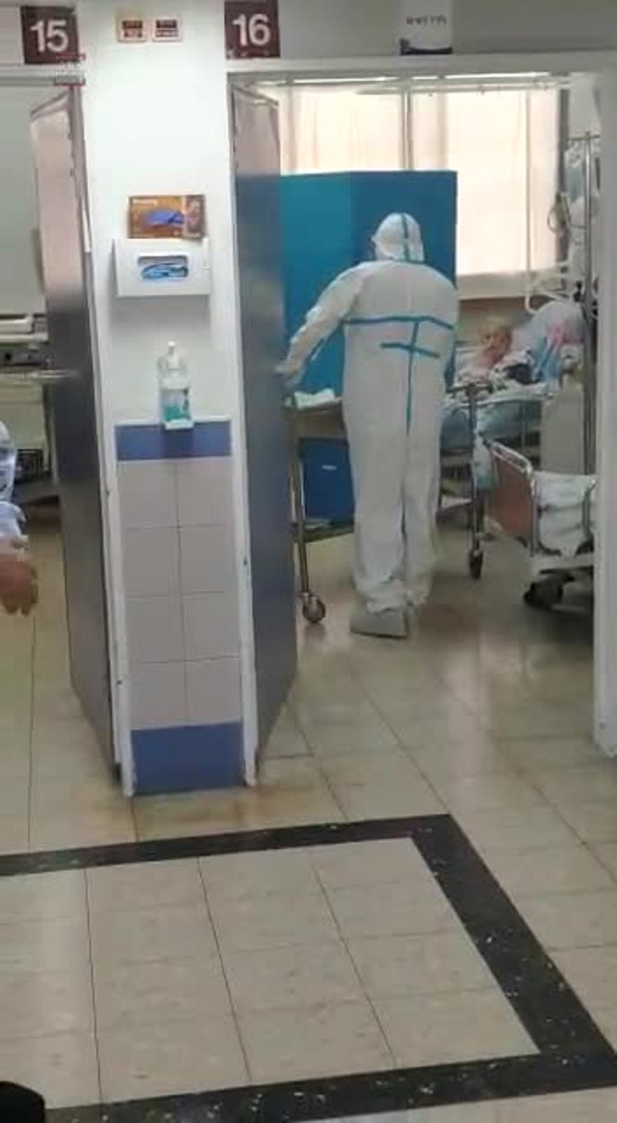 המזכירה השנייה - תמר שוחט, אחראית תפעול של בית החולים רות לילדים ברמב"ם נכנסה ממוגנת לתוך המחלקה עצמה.