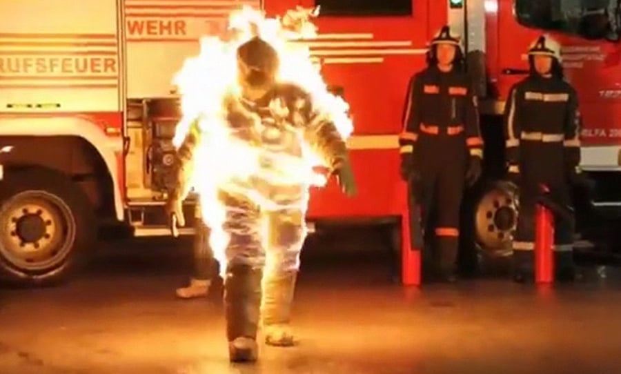 אל תנסו את זה בבית: פעלולן הצית את עצמו ובער במשך קרוב לשש דקות.
