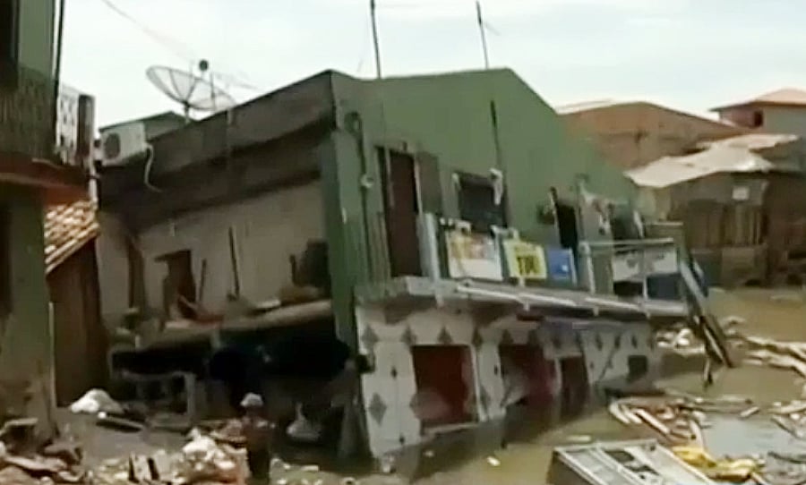 מצלמת בטיחות בברזיל תיעדה רגע נדיר בו רואים בולען שבולע לתוכו 13 בתים בשכונה אבאיטטובה שבצפון ברזיל.