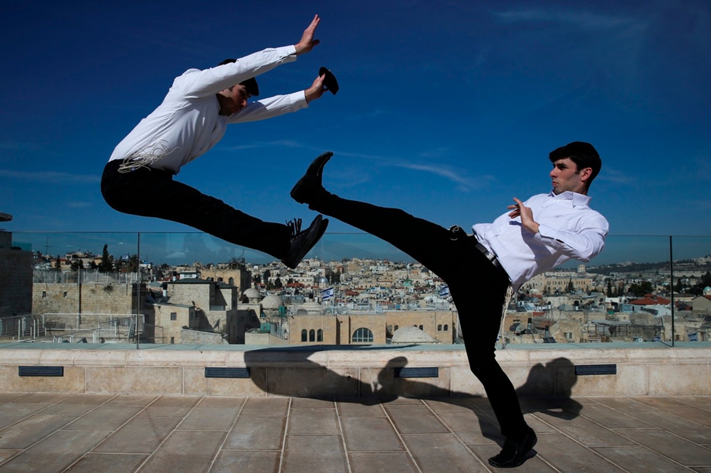 שני אחים חרדים, המשמשים כמדריכים לאומנויות לחימה במגזר החרדי, תועדו על-ידי הצלם נתי שוחט מ"פלאש 90", בעת ביצוע אומנות לימה ברזילאית המשלבת אלמנטים של ריקוד, אקרובטיקה ומוזיקה, בעיר העתיקה בירושלים ובסמטאות מאה שערים (מעניין)