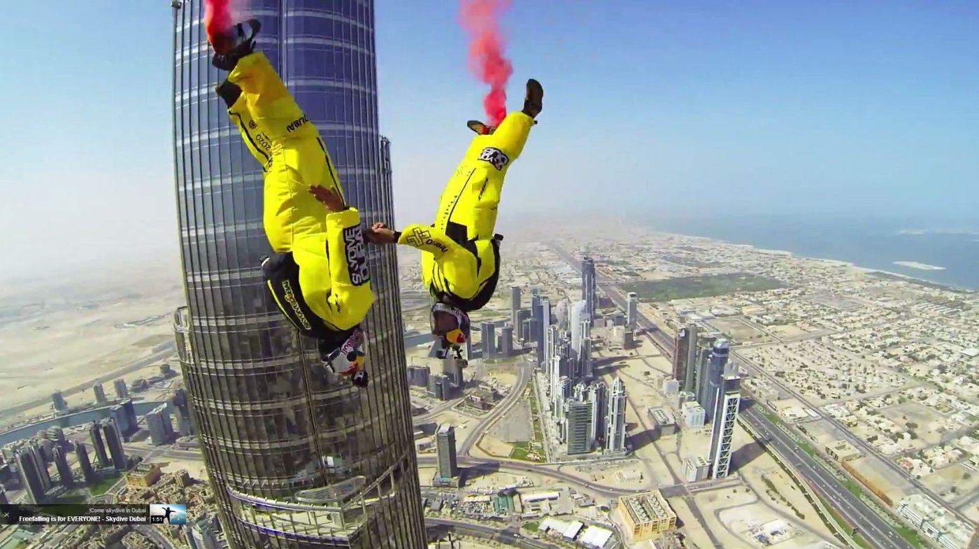 שני צנחנים מקצועיים, וינסנט רפט ופרד פיוגן, שברו את שיא העולם בנפילה חופשית מבניין. השניים ביצעו את הצניחה מבניין "בורז' חאליפה" בדובאי, המתנשא לגובה של כ-830 מטר.