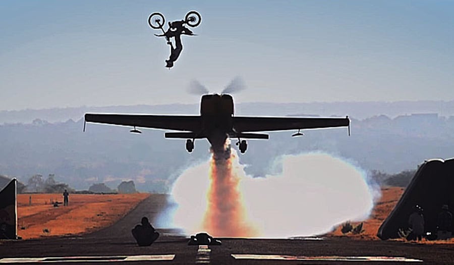 למרות זאת, לאחר שנתיים של אימונים החליטו האופנוען והטייס לבצע את התרגיל הגדול מכולם שכולל התהפכות "סלטה" של האופנוע באוויר בגובה כמה מטרים מהאדמה כאשר כמטר מתחתיו טס מטוסו של גלן דל במהירות של לא פחות מ-325 קמ"ש וכמעט נושק לקרקע.