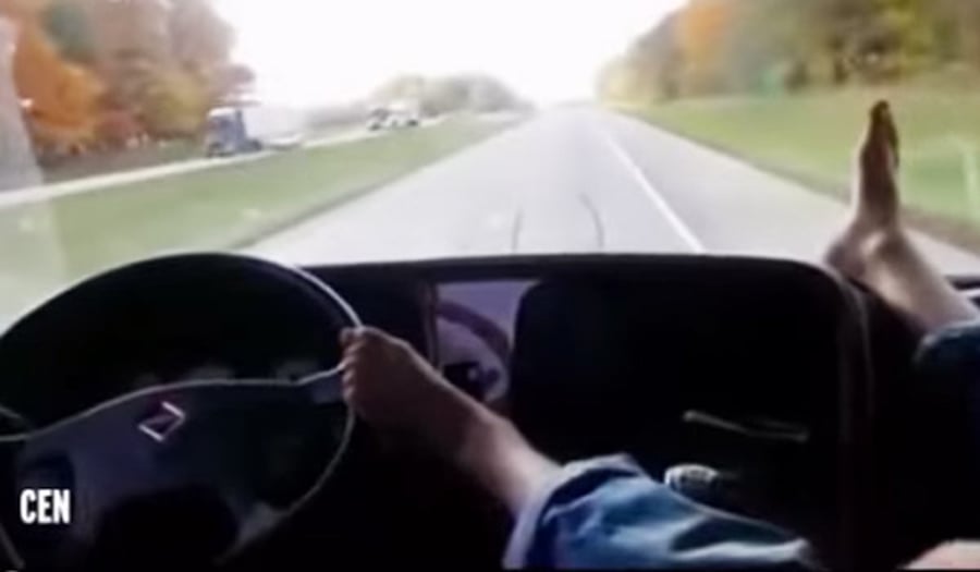 כמה טיפשות צריך בשביל לנהוג על משאית 'בלי ידיים'? • צפו