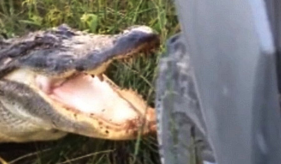נהג משאית בארה"ב ניסה להשוויץ בכלי הרכב שלו מול תנין, אבל שילם על כך ביוקר: התנין התנפל על המשאית, ו"קרע" חלקים מהפגוש. הקטע, לפי ההערכות, צולם בלואיזינה.