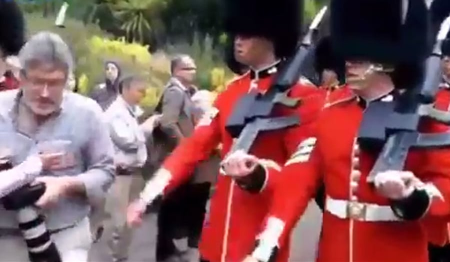 מה קורה כשתייר נעמד בלי כוונה על המסלול של משמר המלכה בארמון בקינגהאם? ובכן, המשמר לא שואל יותר מדי שאלות, ונכנס בו בעוצמה. הקטע הבא שפורסם בשבוע האחרון ב"דיילי מייל" ובמקומות נוספים ברשת צבר יותר ממיליון צפיות ועשרות אלפי שיתופים ברשת תוך זמן קצר.