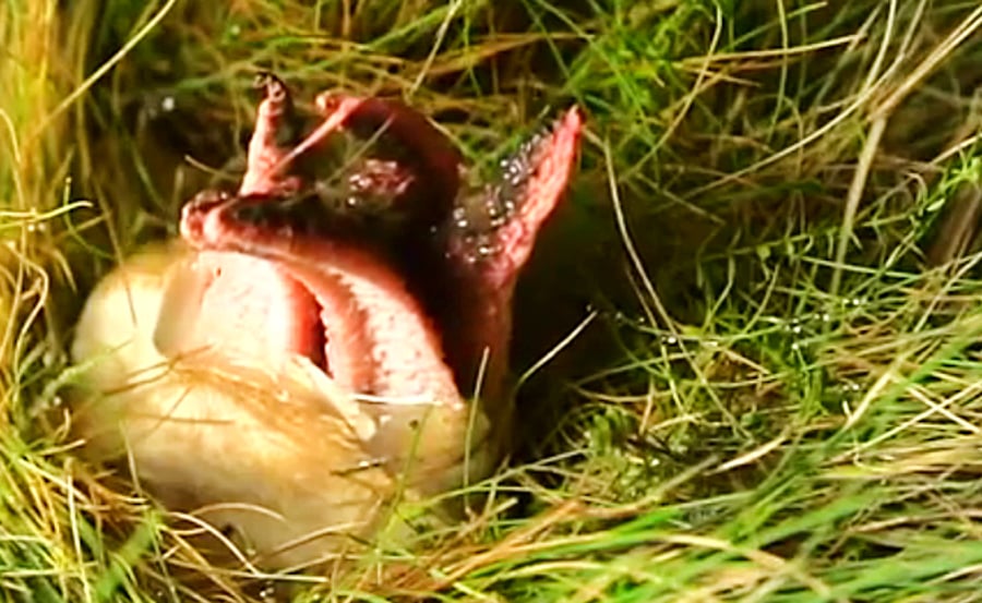 בסרטון שעלה ליוטיוב ניתן לראות זרועות שבוקעות ממשהו דמוי ביצה בתוך הדשא, והולכות וגדלות בדיוק כמו זרועות של תמנון.
