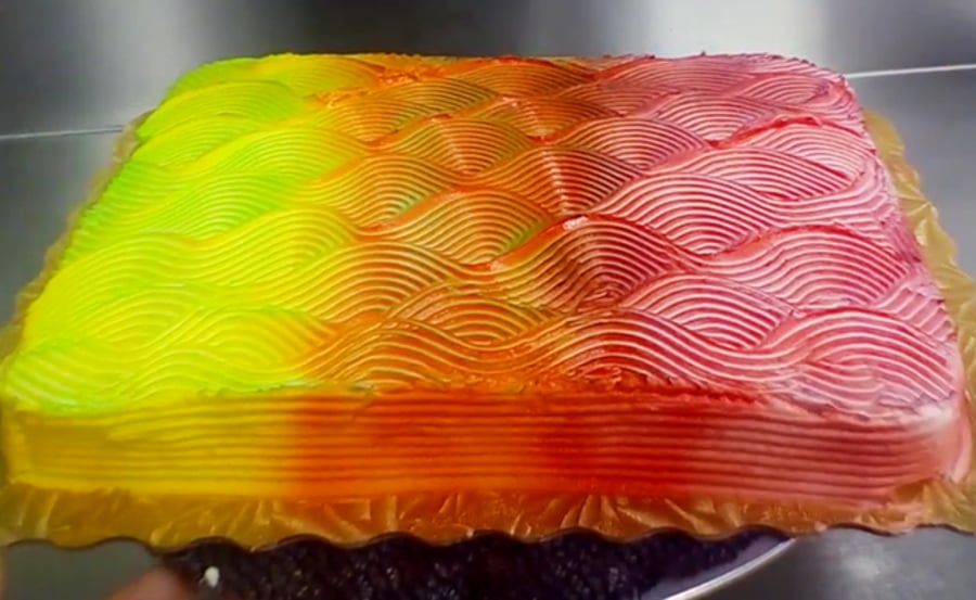אז איך הם עשו את זה? ובכן, באמצעות ריסוס הצבע על העוגה מכל זווית בצבע אחר, כך שמכל זווית שתסתכלו על העוגה היא תיראה לכם בצבעים אחרים. מדובר בעבודה קשה במיוחד משום שבעוגה הסביבות שצבע יזלוג מהמקום שרצית שהוא יהיה למקום אחר גבוהה במיוחד.