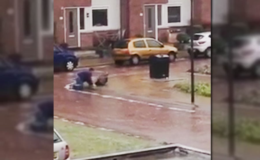 האדם שבסרטון הבא כנראה רצה להרשים את רעייתו ויצא לזרוק את הזבל למרות קור האימים שהשתולל בחוץ. אממה, כידוע צדיק ורע לו, הקרח שהצטבר בחוץ גרם לו להחליק שוב ושוב במהלך ניסיונותיו להתקרב לפח האשפה. שכנים לא נחמדים בעליל שישבו במרפסת ממול פח הזבל נשמעים בסרטון כשהם מצחקקים על התקרית.