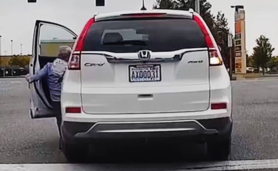 בתיעוד נראית אישה שיוצאת רגע מרכבה ברמזור בכדי לסגור את מכסה הדלק, אולם הוא מתחיל להידרדר וכשהיא מנסה לחזור אליו היא נדרסה על ידי הרכב שלה.
