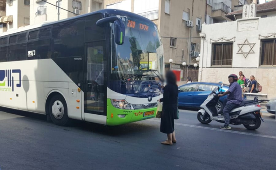 אישה חרדית שזעמה על כך שנהג אוטובוס לא עצר היכן שלטענתה אמורה להיות תחנת אוטובוס, נעמדה מול האוטובוס ולא אפשרה לו להמשיך בנסיעתו. גולש "כיכר השבת" תיעד (מעניין)