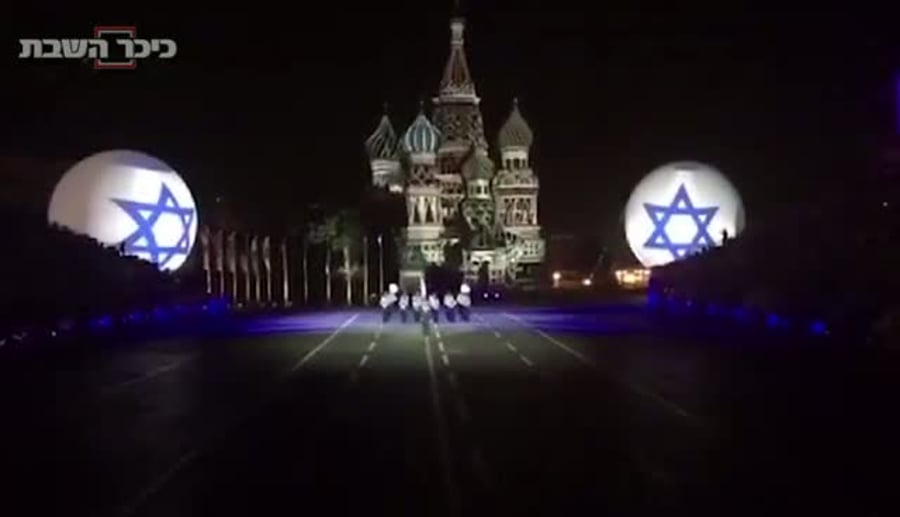 הכיכר האדומה במוסקבה הוארה במגיני דוד ענקיים וקושטה בדגלי ישראל לכבודה של תזמורת צה"ל, אשר השתתפה השבוע בפסטיבל תזמורות צבאיות מכל העולם בכיכר המפורסמת.