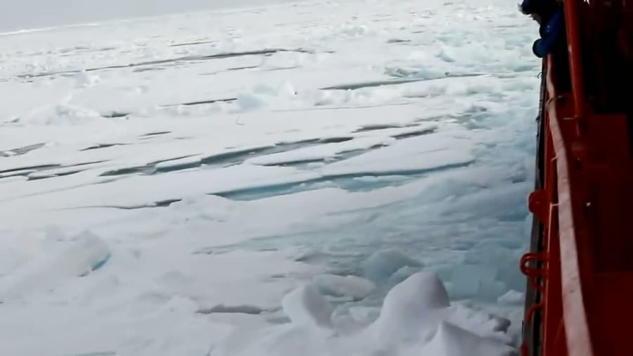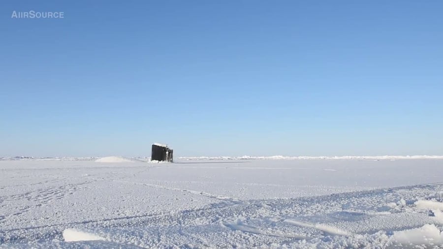 בסרטון נראית צוללת גרעינית אמריקאית, שמבצעת תרגיל שגרתי של פריצה דרך מדף קרח.