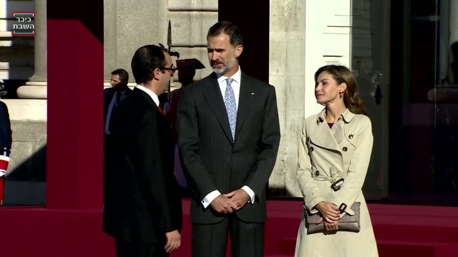 הנשיא ראובן ריבלין ורעייתו נחמה התקבלו אתמול (שני) בכבוד רב על-ידי פליפה מלך ספרד והמלכה לטיסיה בארמון במדריד, שם סקר במשך דקות ארוכות את משמר הכבוד • צפו (מעניין)