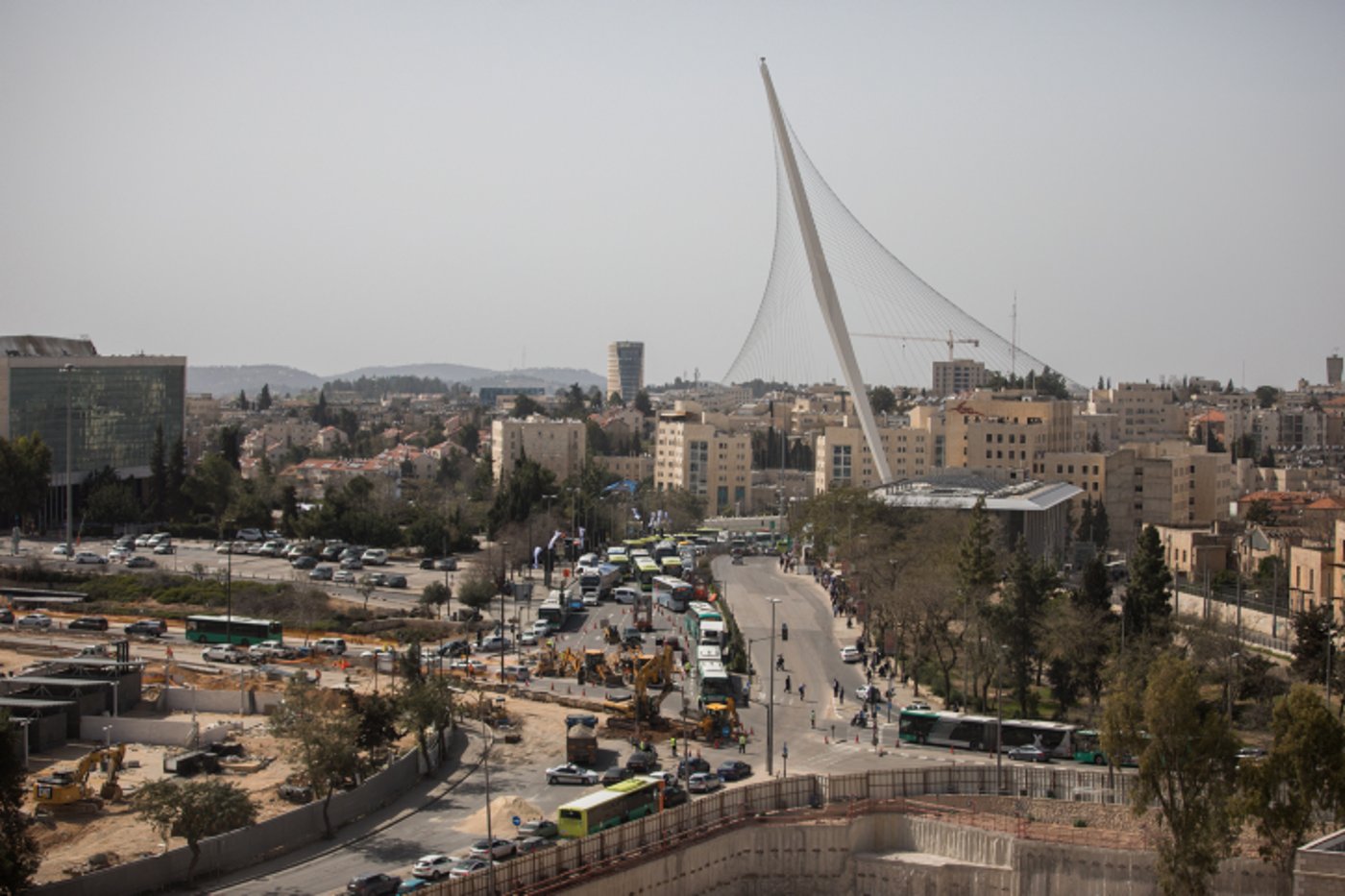 עבודות הקמת רובע המסחר החדש בכניסה לירושלים וחסימת הצירים המרכזיים ליד בנייני האומה גורמים לפקקים קשים בבירה • הצלם יונתן זינדל תיעד את תחילת העבודות (מעניין)