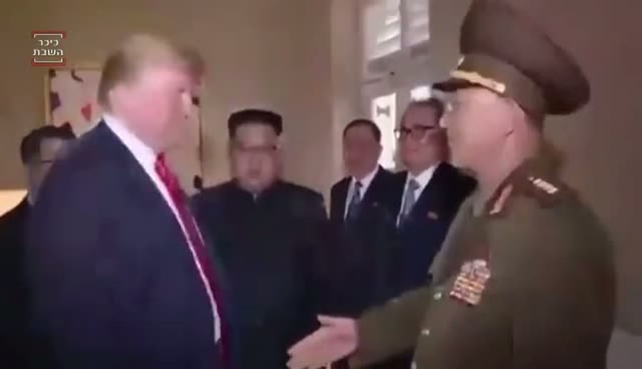 הטלוויזיה הממלכתית בצפון קוריאה פרסמה היום (ה') סרטון שבו נראות תמונות חדשות מהפגישה של דונלד טראמפ עם קים ג'ונג און ובכירי משטרו בוועידת הפסגה שלשום בסינגפור. בסרטון נראה רגע בו טראמפ נאלץ להשיב הצדעה לגנרל מצבא צפון קוריאה.