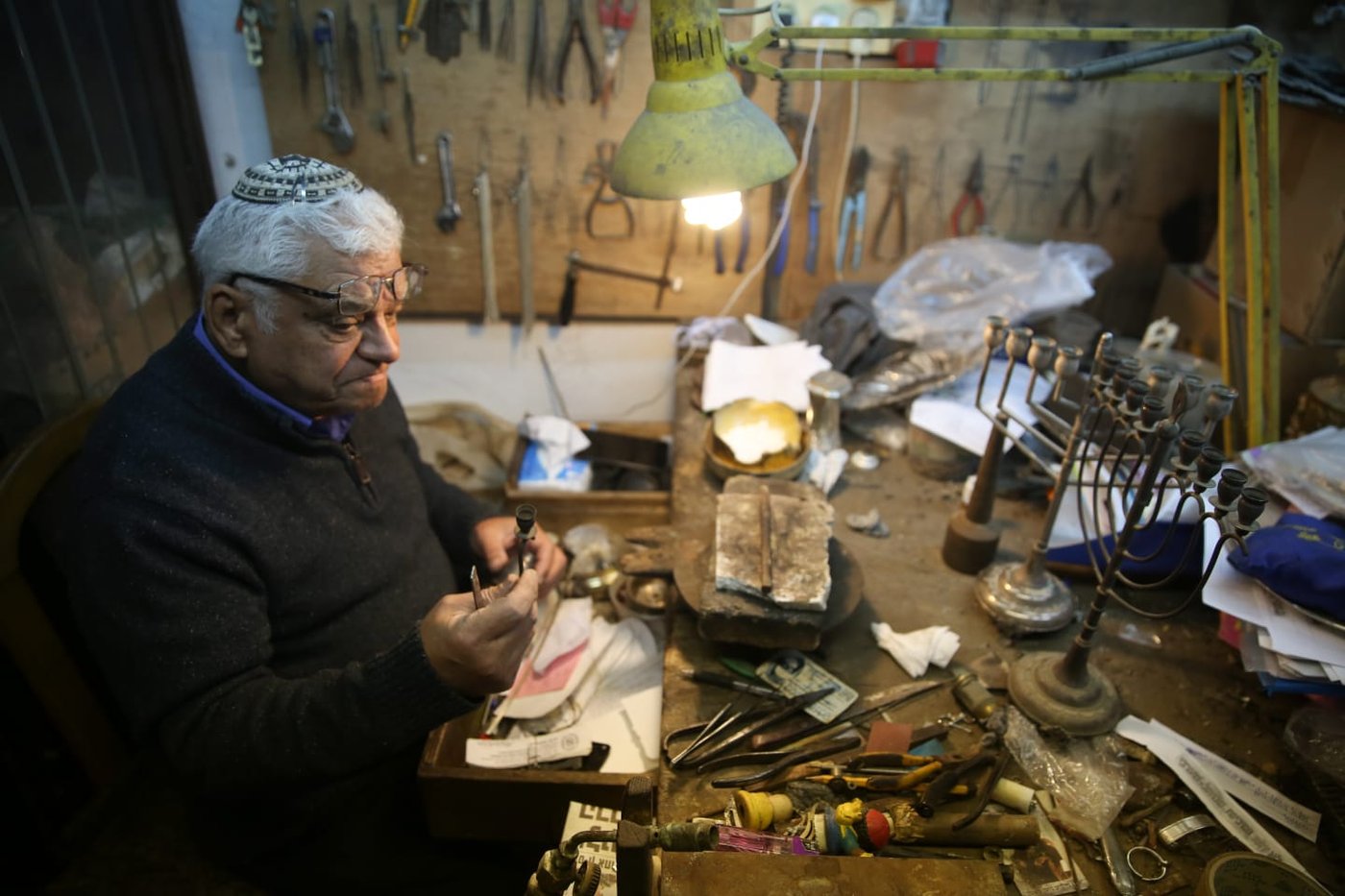 קוראים לו סעדיה נדב, הוא בן 78, וידיו עמוסות בימים אלו בעבודה נדירה: תיקון חנוכיות.
