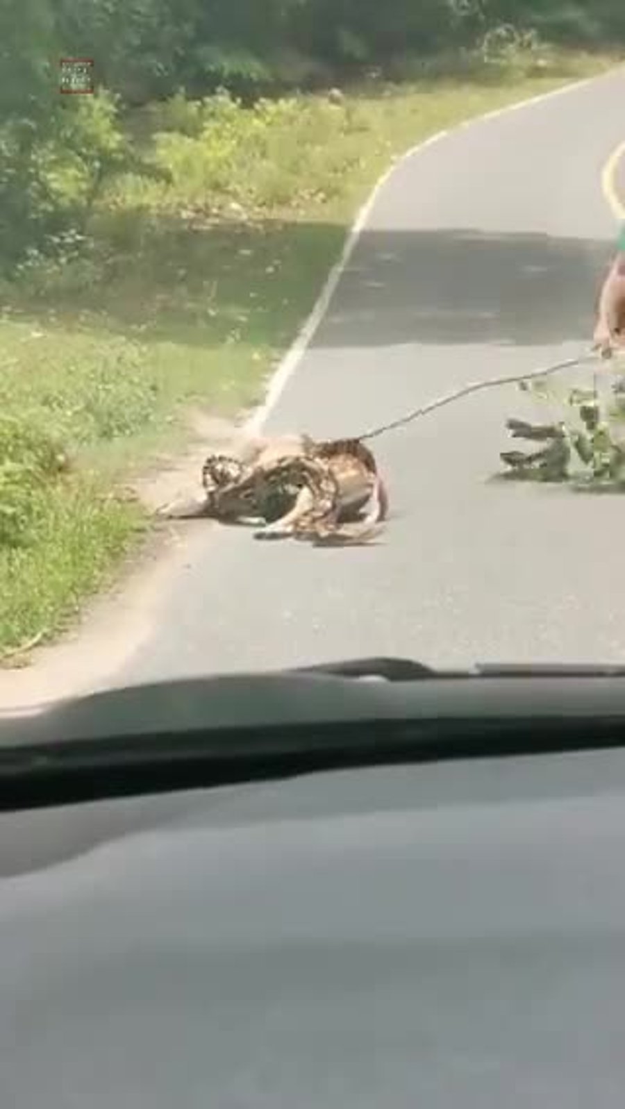 נחש פיתון באורך שלושה מטרים ניסה לחנוק ולבלוע אייל בצידי כביש בתאילנד. אדם שהבחין בכך, מיהר להתערב ולהכות בנחש בעזרת ענף עץ • איך זה נגמר? צפו (מעניין)