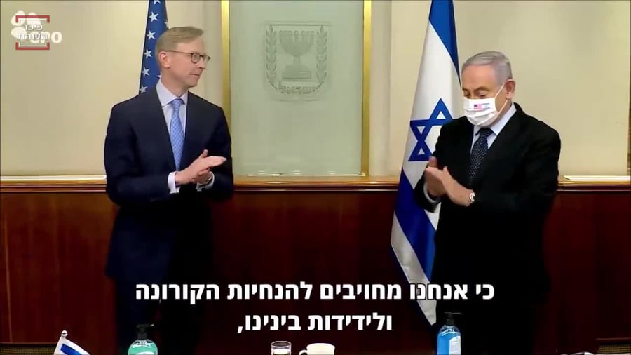 בחשבון הטוויטר של ראש הממשלה, העלו קטע וידאו של נתניהו והוק המחטאים את ידיהם באלכוג'ל, לאחר שלחצו ידיים - למרות הקורונה.