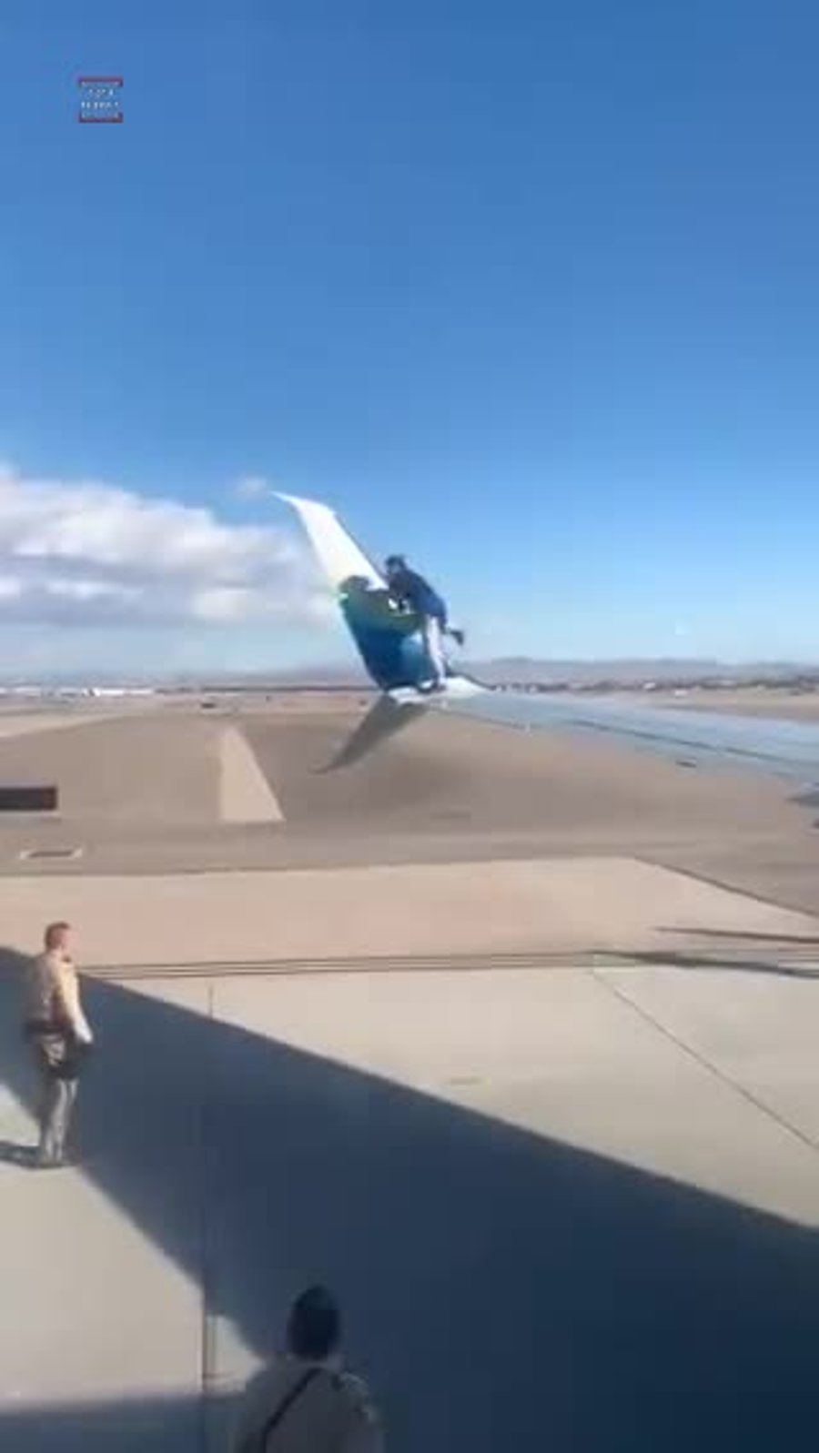גבר טיפס על כנף המטוס, והתיישב עליו. כאשר הגיעו השוטרים למקום, קם ממקומו וניסה לטפס גבוה יותר - אך אז החליק ונפל ארצה.