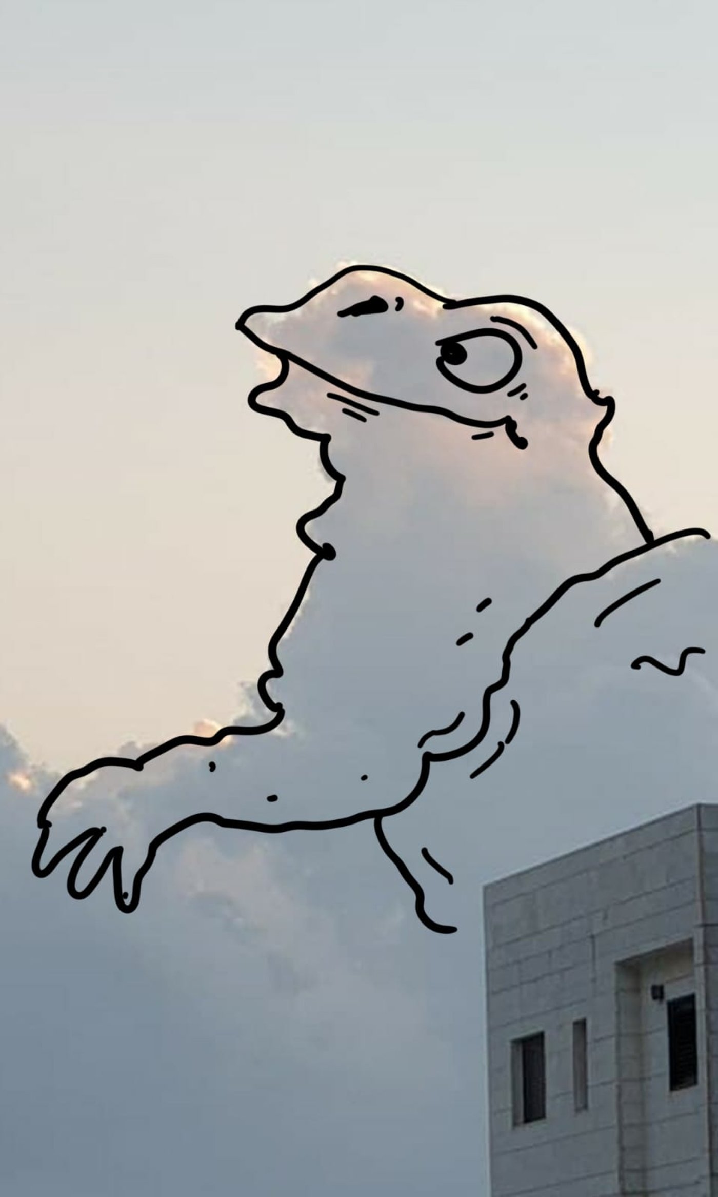 בעקות הצללית של הפרצוף שראה, צילם אוריאל פלד את הענן, צייר מעליו פרצוף והעלה לסטטוס בוואטספ.