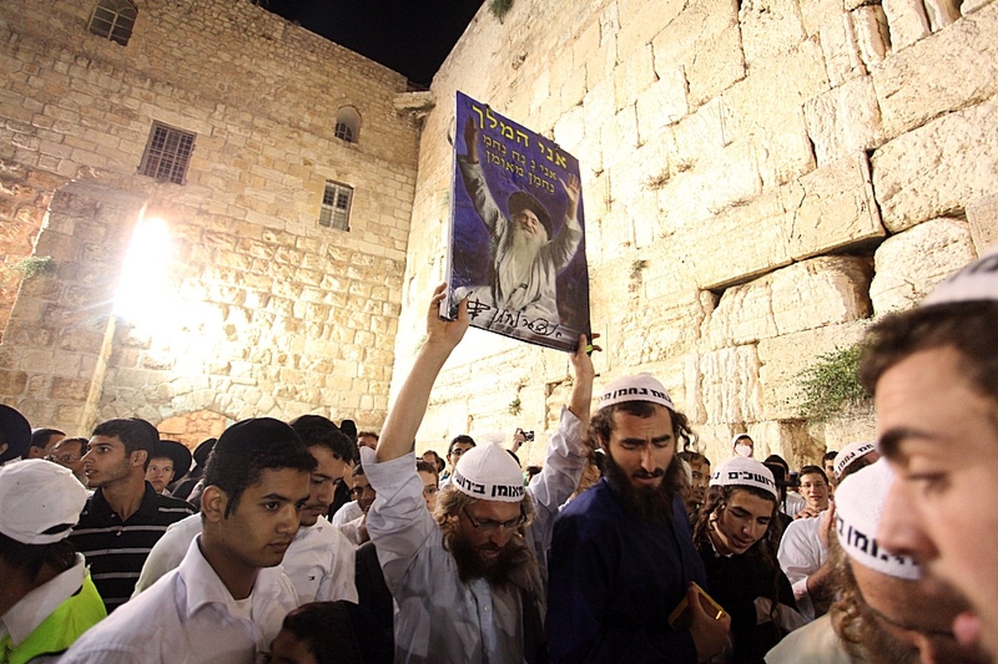יש אנשים שמתקשים לעצור את השמחה המתפרצת, גם בתשעה באב. קחו למשל את אנשי ה"נ נח נחמן", שהגיעו אתמול לכותל המערבי כשהם מצוידים בכרזות ענק של ה"סבא", ישראל דב אודעסר וחוללו מהומה במקום.
