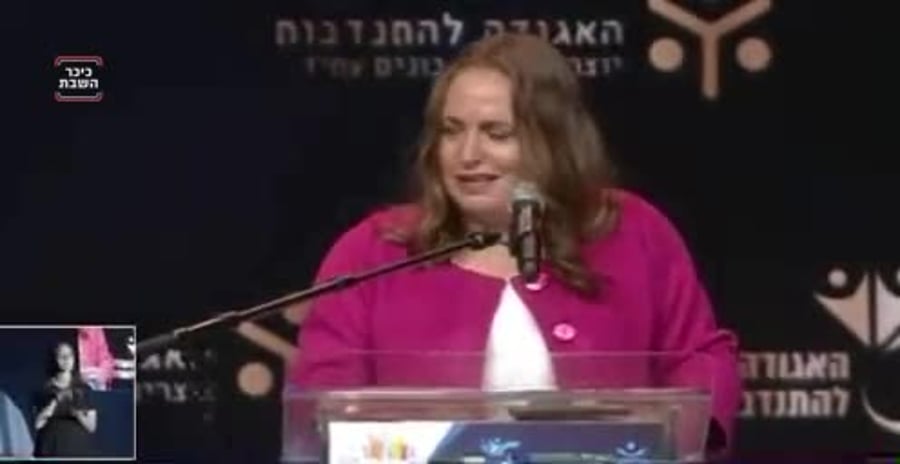 יו"ר הבית היהודי בירושלים וחברת מועצת העיר, חגית משה, נאמה אמש (שני) בכנס הצדעה למתנדבי השירות האזרחי שנערך בבנייני האומה בירושלים.