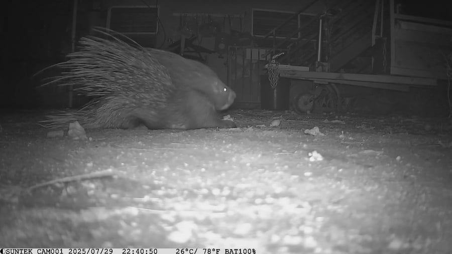 מצלמות האבטחה של הספארי תפסו מספר פעמים את המסתנן - דורבן הודי, מכרסם נפוץ בארץ, כשהוא מגיע לספארי בשעת לילה מאוחרת או השכם בבוקר, ומכרסם.