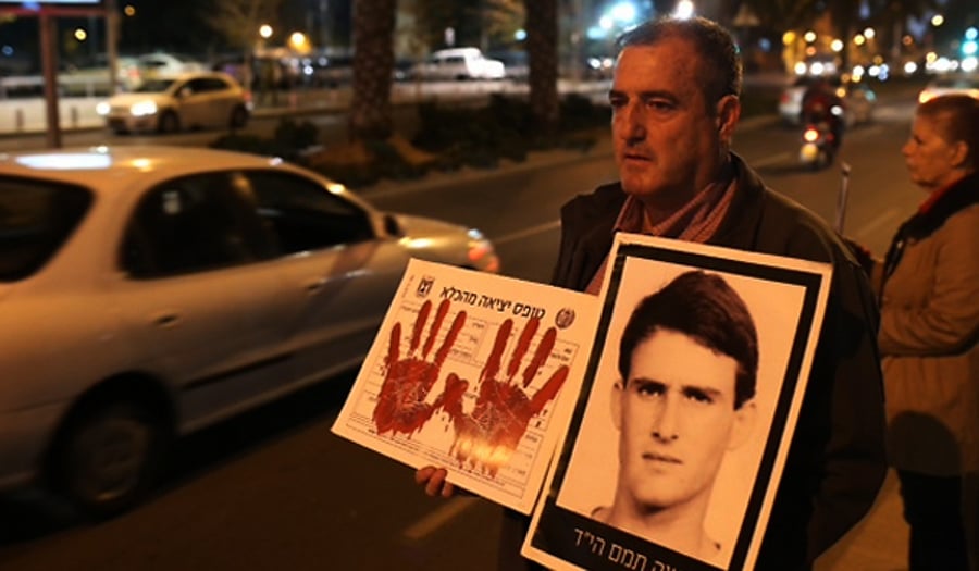 עשרות בני אדם, בהם בני משפחות שכולות, ערכו הפגנה מול בסיס הקריה בתל אביב, ומחו על שחרורם של 26 מחבלים הצפוי לצאת לדרכו בשבוע הבא.