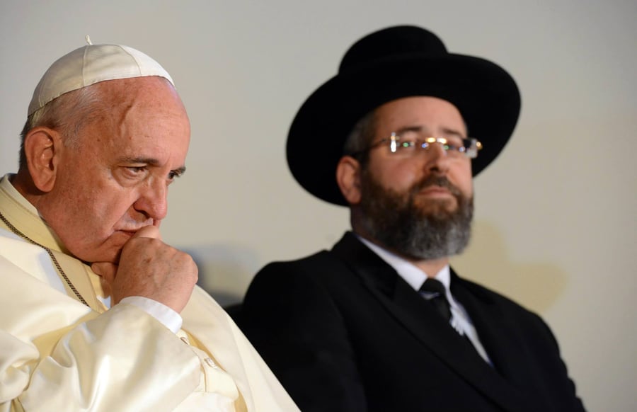 הרב דוד לאו הציג בפני האפיפיור את ראשי ארגוני החסד שמצילים חיים בישראל. "אני רוצה לדבר על ערך החיים שהוא מעל לכל. בשביל חיי אדם מחללים את היום הקדוש ביותר עבורנו יום הכיפורים. מנהיגי הדתות צריכים לצאת בקריאה משותפת למנוע שפיכות דמים, מעשי שנאה, הרס בתי קברות ופגיעה בשם הדת".