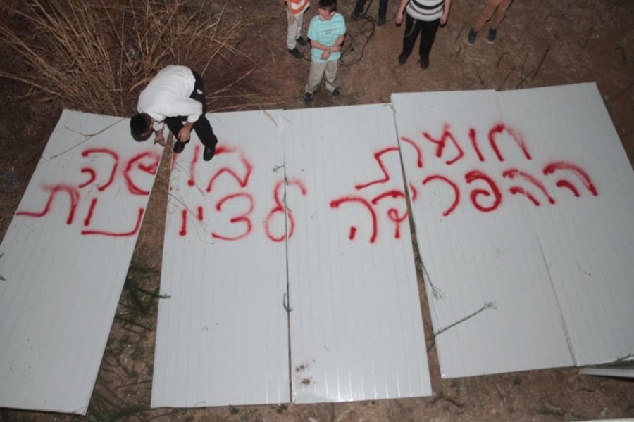 הסרת המחיצות בבית הספר, אמש (צילום: יעקב לדרמן)